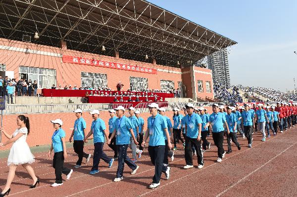 (宣传部)4月24日上午,我校第九届田径运动会在未央校区体育场隆重举行,全体校领导与全校师生共同参加开幕仪式,开幕仪式由党委副书记宫浩兴主持。
