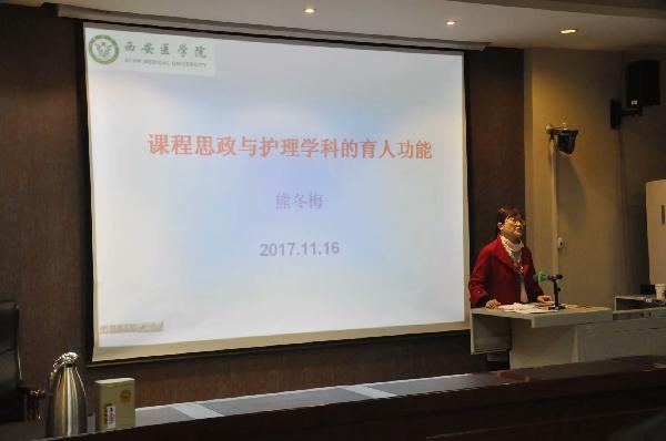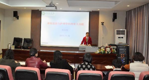11月16日,护理学院特邀校党委副书记熊冬梅来院以“课程思政与护理学科的育人功能”为题进行学术讲座,学院全体教职工和学生干部聆听了讲座。学术讲座由护理学院院长张永爱主持,强调了对于护理人才培养“立德树人”和 “贯穿人文精神”的重要性。