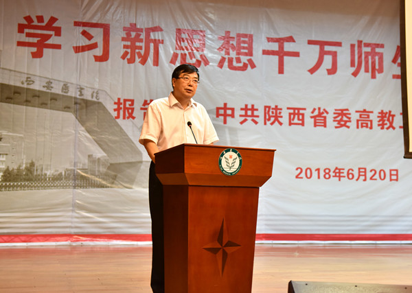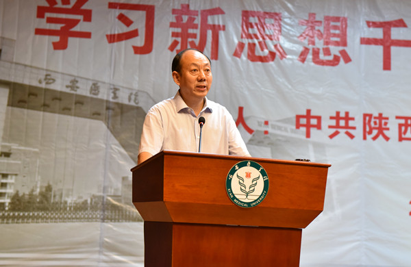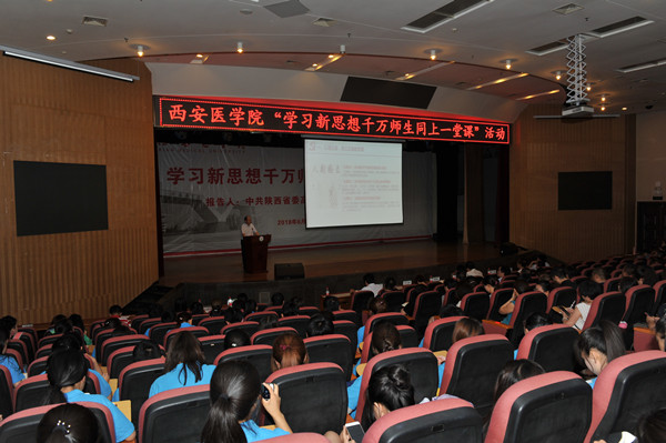 6月20日下午,西安医学院“学习新思想千万师生同上一堂课活动”在未央校区学术报告厅举行。中共陕西省委高教工委书记董小龙亲自授课。我校领导班子成员、处科级干部、党支部书记、马院教师、辅导员及学生代表500余人聆听了授课。授课会由西安医学院党委书记范兵主持。