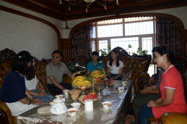 8月1日6点家访组被闹铃叫醒,收拾行囊前往伊宁市。“亚克西拇塞斯,欢迎你们”古丽米热的父亲用不太熟练的汉语热情地邀请老师们快到家中,家访组来到预防1519班古丽米热·艾尔肯的家中。交谈中,我们了解到古丽米热的父母都是朴实的农民,父亲车祸致残,母亲无工作,弟弟哈迪旦·艾尔肯患有严重的代谢性骨病,古丽米热也患有脑瘤。生活的重担使得古丽米热的父亲的脊背更加佝偻,但没有改变他善良朴实的秉性和对未来美好生活的憧憬。杨帆院长对古丽米热的父母说:“当前日子很艰难,但你们真正教育出来了一个好孩子!希望在党的好政策下,你们把日子过好,紧跟党走,同时也请你们放心,古丽米热在学校,就是我们的孩子,我们一定会教育好她,让她成长为一名好医生,造福社会。”他又对古丽米热说:“笋因落箨方成竹,你与病魔的斗争让我很感动,希望你能乐观向上,早日康复。”随后,杨帆院长代表学校向热比古丽给予一千元慰问金,离别的时候他又悄悄在坐垫下放下了身上的所有现金给这个顽强而又多磨难的家庭。