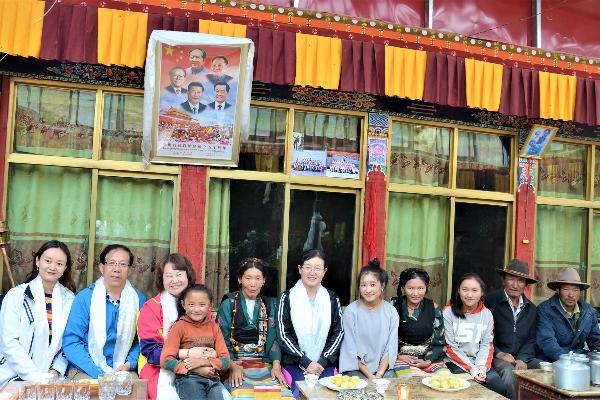 2019年暑期,党委书记范兵、副书记熊冬梅带领学工人员前往雪域高原,看望藏族学生,实行精准帮扶。道路险阻,高寒缺氧,一路上家访组要克服自然环境困难,还要不断面对生理与心理挑战,但这也加深了家访组对藏区学生的担心与牵挂。23日上午,家访组前往墨竹县唐加乡莫冲村顿珠旺姆家,村口偶遇村支书歌曲书记,在她引导下我们很快来到了这个12口之家。“扎西德勒”,孩子父母不懂汉语,但热情、激动溢于言表。范兵书记表明来意,询问了家里情况,告知家长孩子在校学习情况,并听取家长对学校的意见和建议,随后递上了慰问金。接下来的家访路上,每到一名学生家里,范兵书记都耐心向学生家长介绍学校近年的发展情况,并结合受访学生在校的学习、生活情况和家长们进行深入交流,详细说明国家及学校相关资助政策和措施,鼓励学生要树立信心、勤奋学习、磨炼意志、早日成才;认真听取家长对学校各方面发展的意见和建议。同时,范兵书记向学生家庭和社区传达了党和国家的利民政策,要坚决维护民族团结,鼓励家长适当学习汉语,多了解党和国家的方针政策,要把精力集中在经济建设和孩子教育上,勤劳致富奔小康。