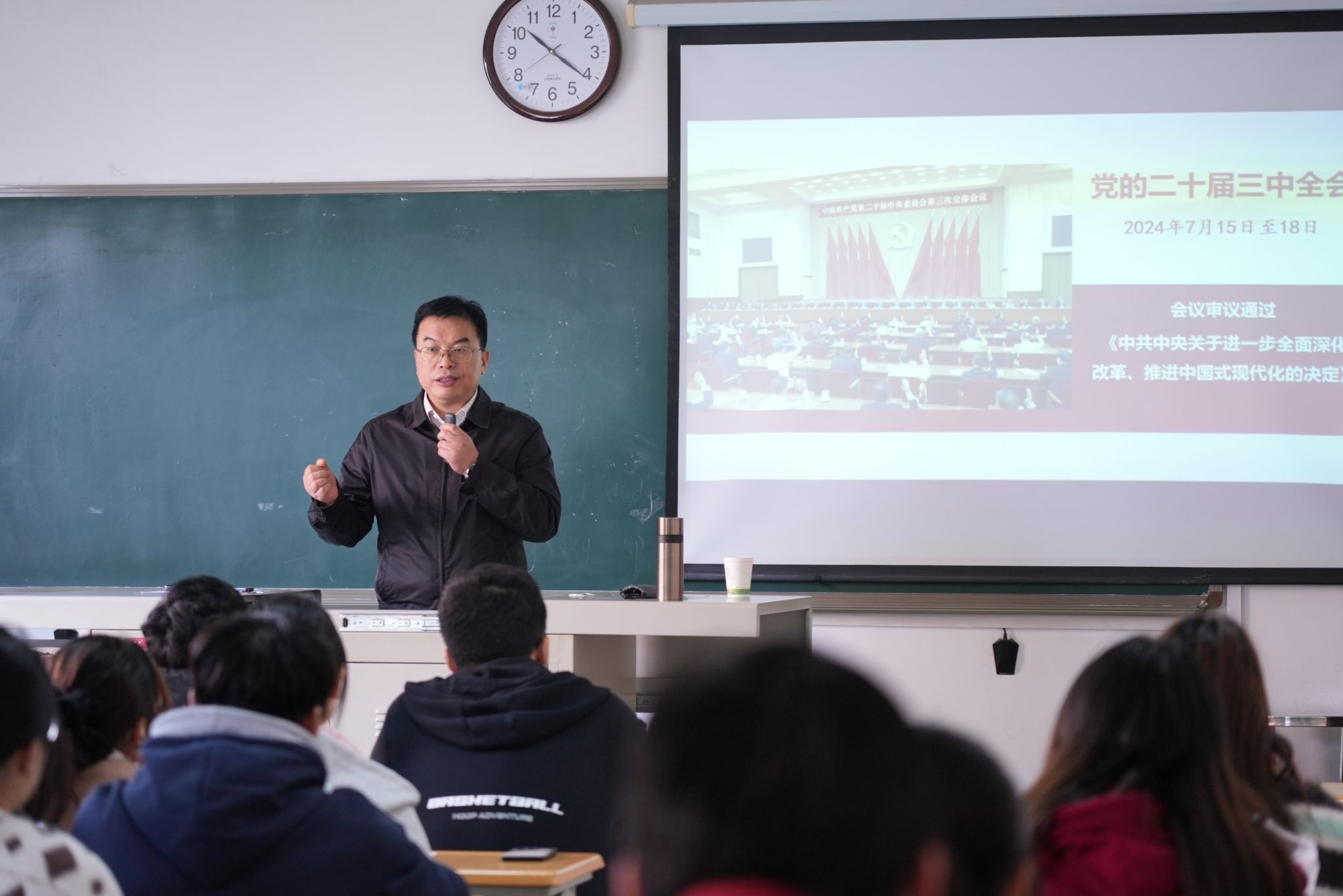 为深入学习贯彻党的二十届三中全会精神,进一步推进“大思政课”建设,近日,校领导走进思政课堂,以“新征程进一步全面深化改革的纲领性文件——学习领悟党的二十届三中全会精神”为主题,为广大学子带来一场场具有思想高度和理论深度的“形势与政策”课,受到同学们一致欢迎。