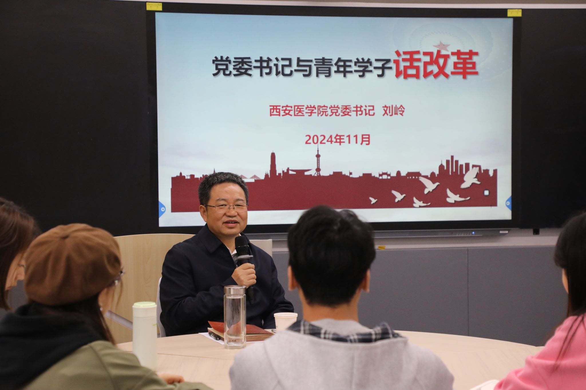 11月15日,党委书记刘岭在大思政课育人体验中心与青年学子话改革,分别为我校2023级临床、儿科、康复、口腔等专业学生代表讲授思政课。通过与学生面对面交流,共同学习贯彻党的二十届三中全会精神,探讨个人投入改革的关键,倾听学生对学校改革发展的意见和建议,并结合学校实际情况,与每位发言的学生进行深入互动与交流,耐心细致地回应同学们提出的各类问题。