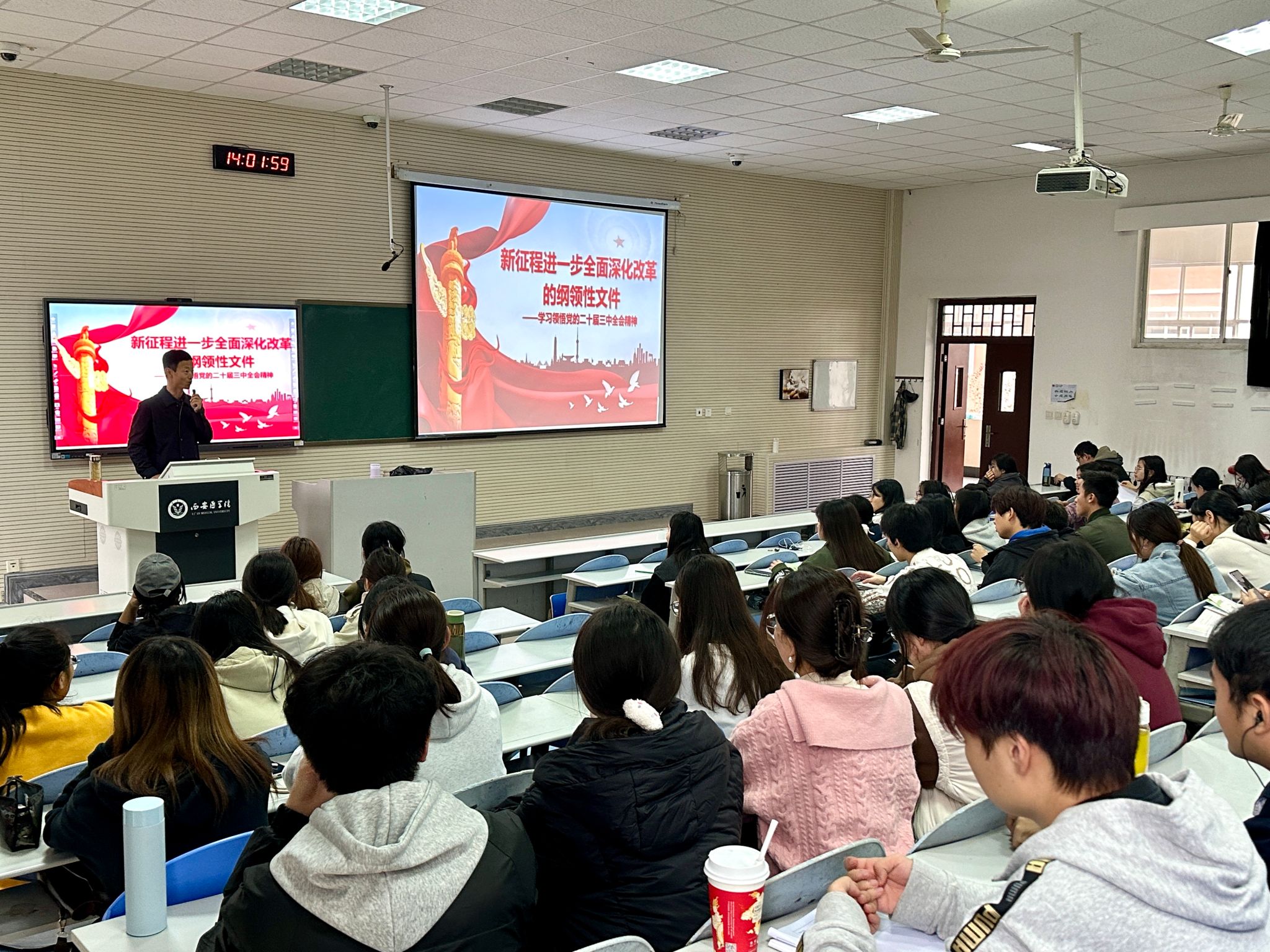 10月31日至11月15日,校领导陆续深入一线课堂为学生讲授“形势与政策”课,结合学校发展现状,运用生动的案例、详实的数据,深入浅出地解读党的二十届三中全会精神,教育引导学生珍惜伟大时代赋予的难得机遇,把个人理想追求融入强国复兴的伟大事业之中,用青春践行“请党放心、强国有我”的铮铮誓言,在推进学校高质量发展中心怀爱国之情,笃行报国之志,成为国家所需的新医科卫生人才。