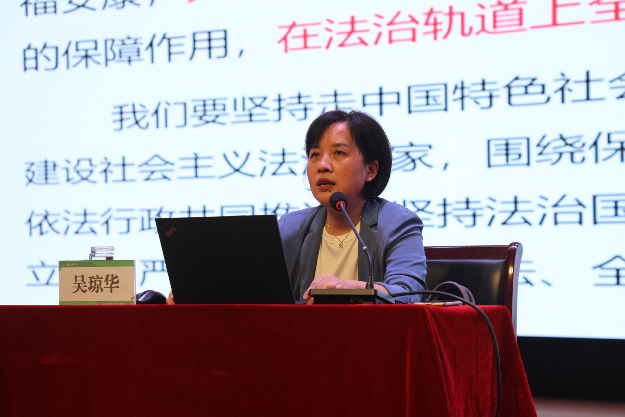 吴琼华以《以习近平法治思想为指引,奋力谱写法治陕西建设新篇章》为题,围绕习近平法治思想的时代意义、核心要义作了深入解读,并从组织层面、个人层面对学习贯彻习近平法治思想的方法路径作了系统讲解。报告主题鲜明、重点突出、启发性强,对推进依法办学、依法治校具有重要指导作用。