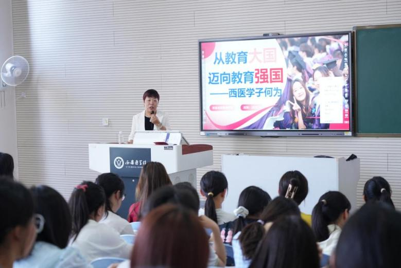 6月12日,校长巩守平为学生讲授思政课。他以建设教育强国的重大意义、把握教育强国的科学内涵、理解教育强国的关键部署、顺应医学教育的时代变革等四个方面的内容为重点,引导学生思考何为教育大国、何为教育强国;通过分享自身的教育经历,让学生对建设教育强国有了更加深刻的认识和理解。他指出,青年学子肩上责任重大,一定要拥抱时代发展下的技术变革,保持医学学习研究的专注精神,开阔视野树立终身学习的强大信念,才能在建设教育强国的进程中展现西医学子的使命担当。